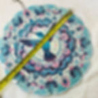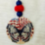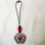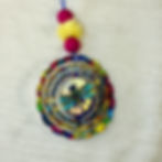 Our Car Charms are like little miniature designs of our wind spinners. They are 3" in diameter. They hang from your rear view mirror in your car. Each car charm comes with a break away clasp for easy hanging.